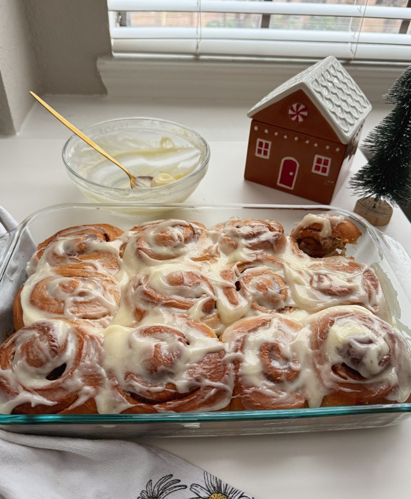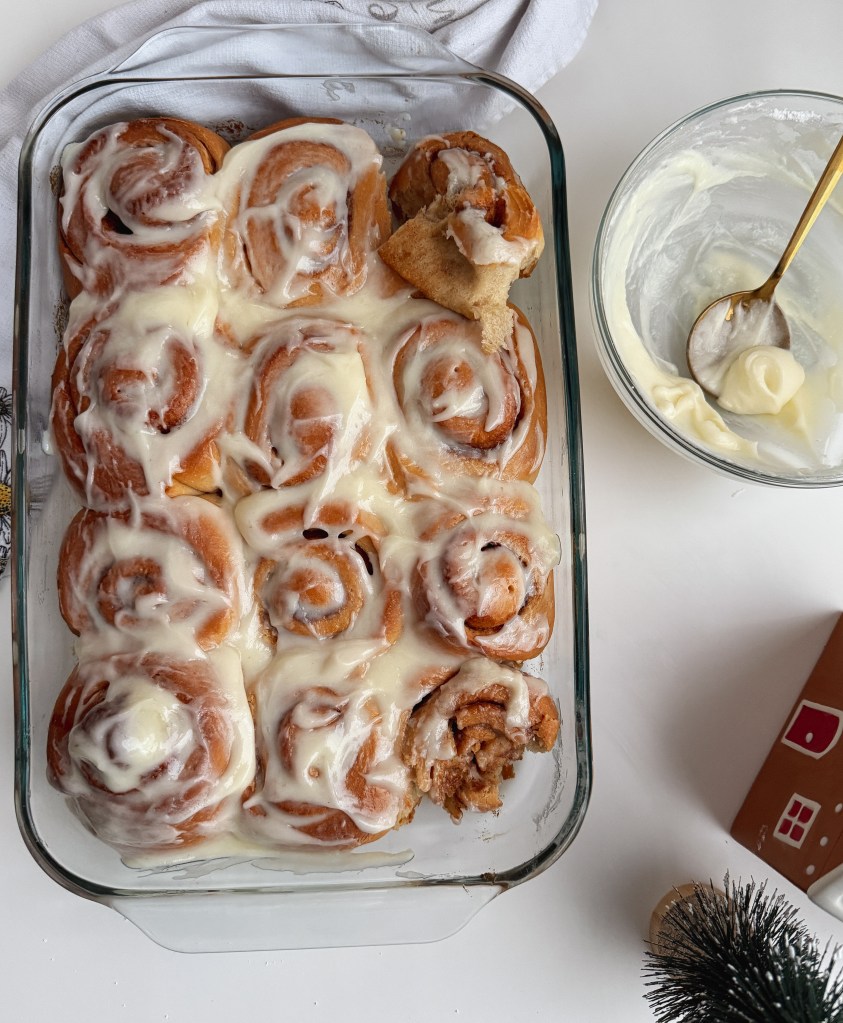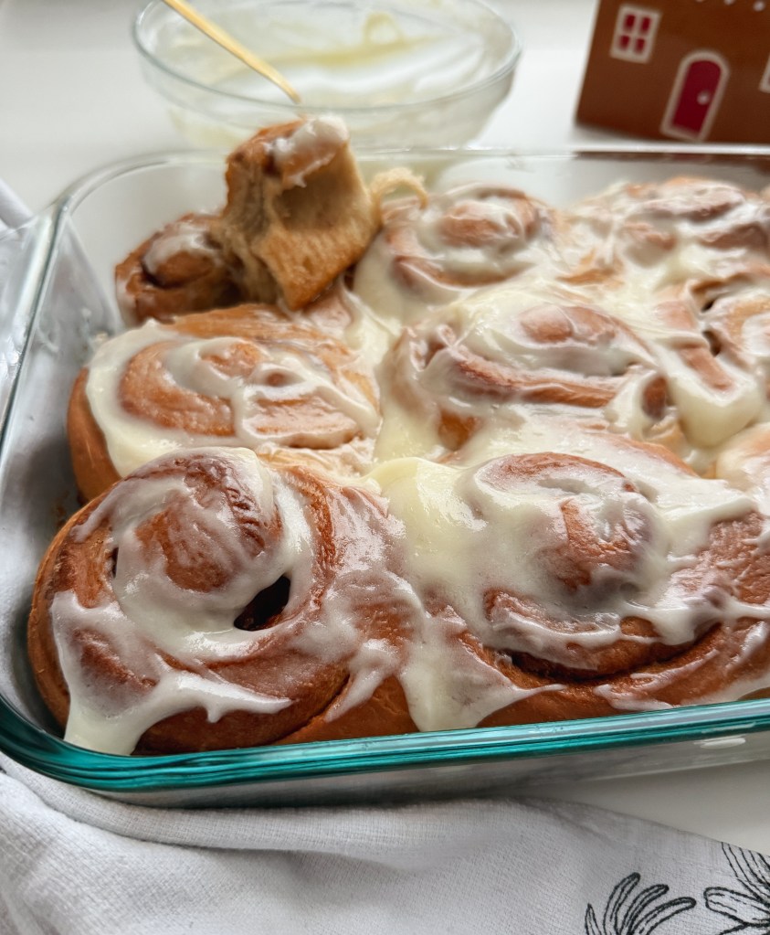 Immediately remove the rolls from the oven and spread with a generous amount of glaze. Let cool slightly before serving.