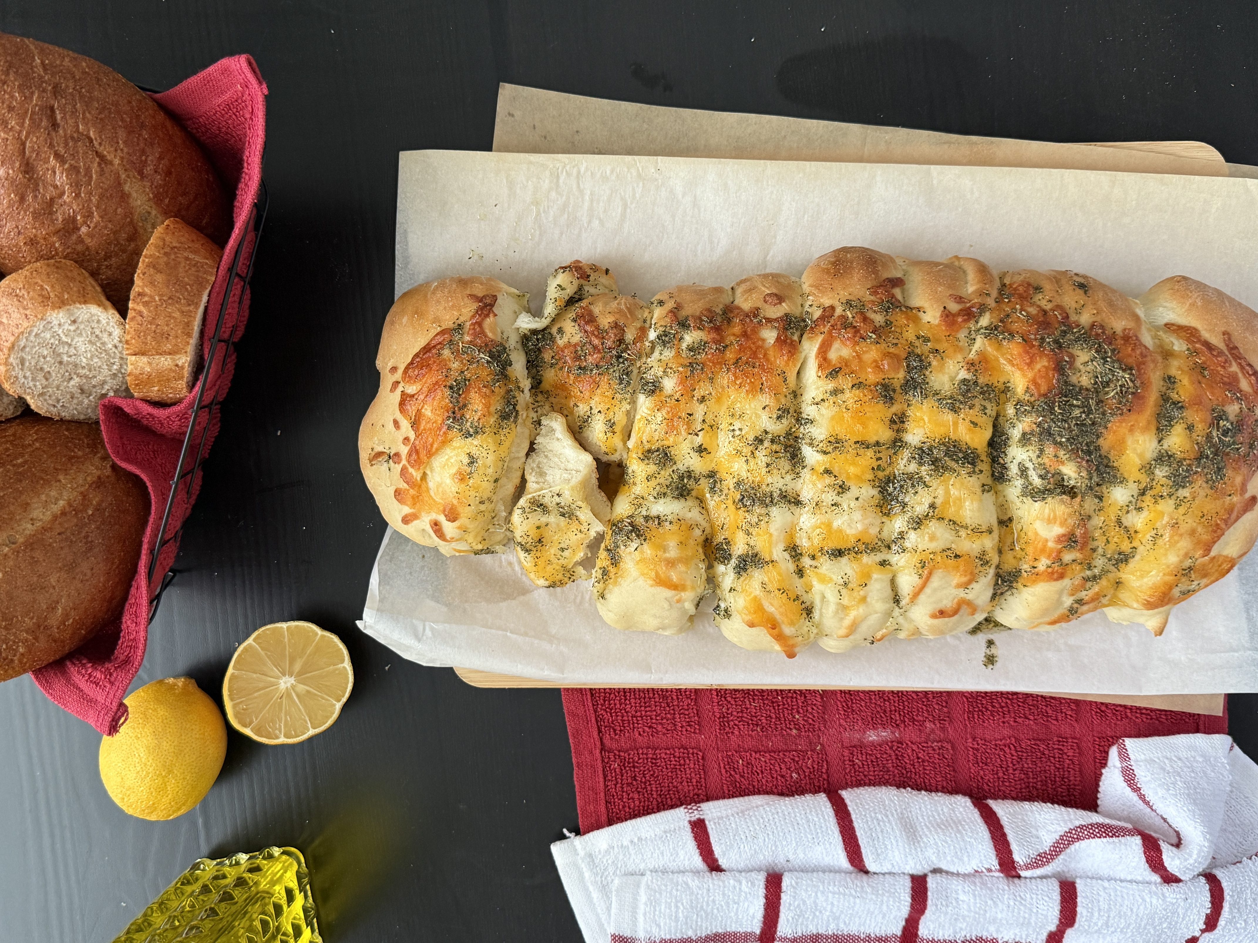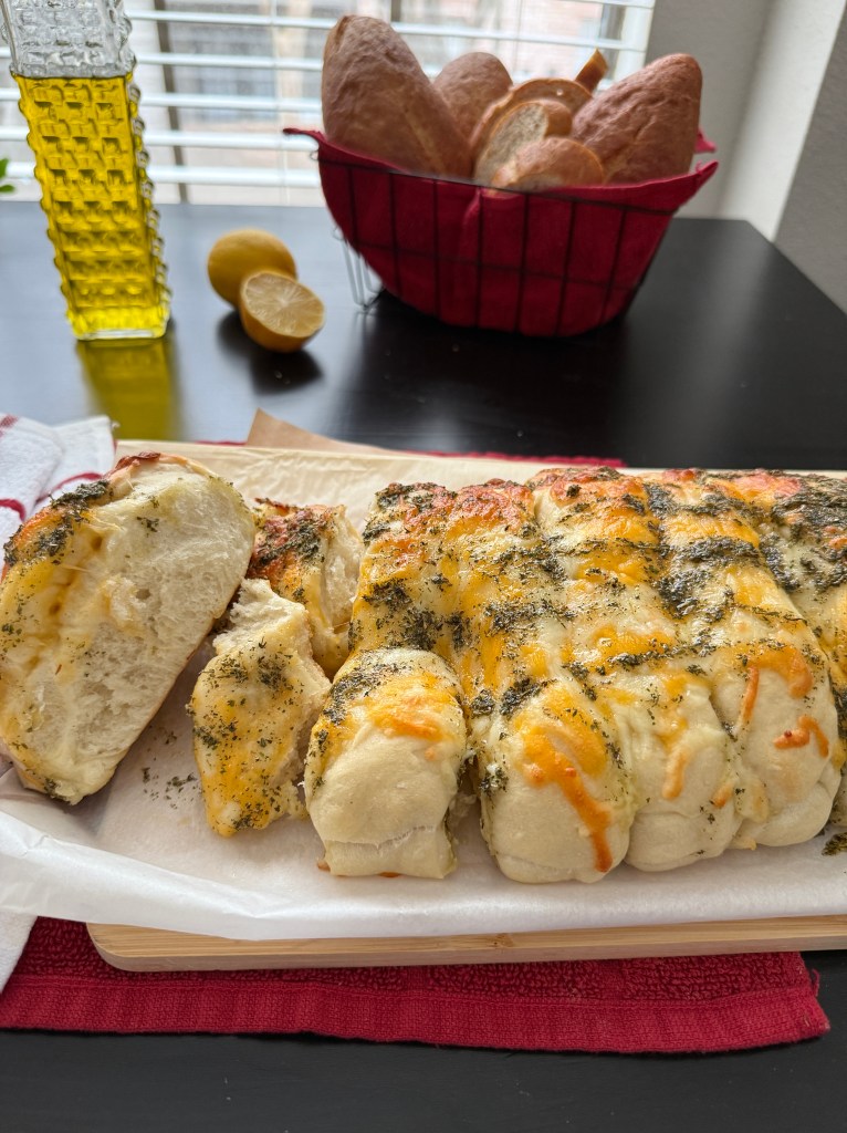- Drizzle the herb oil mixture evenly over the freshly baked cheese bread.