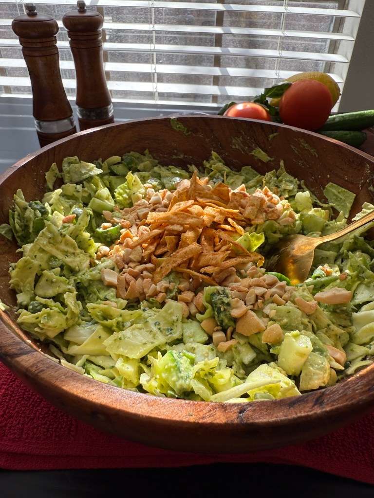 The Green Goddess Salad is a vibrant, fresh, and nutrient-dense dish packed with crisp vegetables and a creamy, herbaceous dressing. This salad is not only delicious but also incredibly healthy, featuring fresh greens, creamy avocado, crunchy cabbage, and a flavorful homemade dressing.