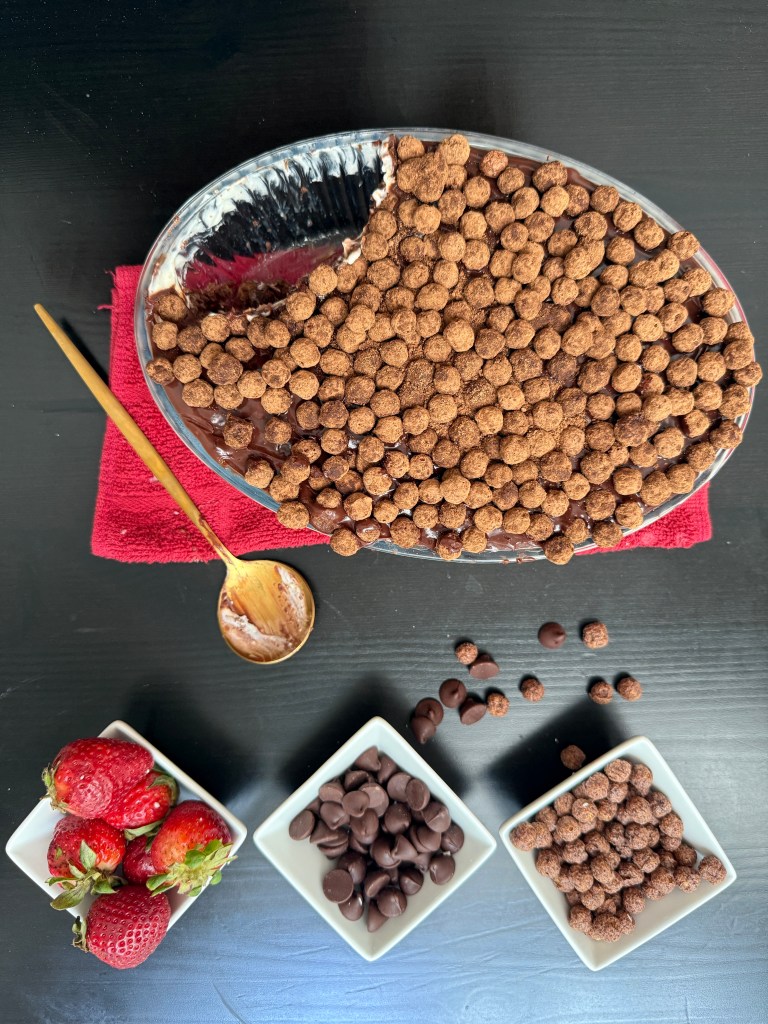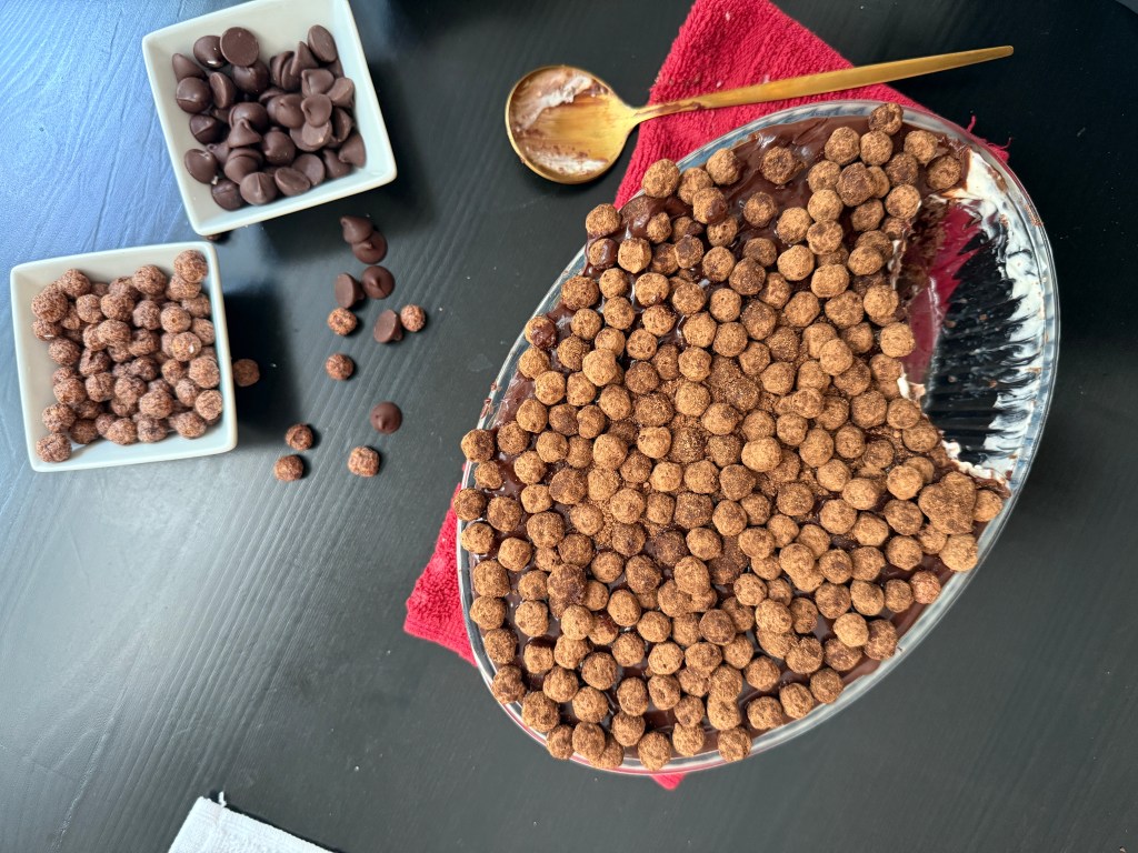 In a small bowl, mix the cereal with 1 tbsp of the ganache until coated.