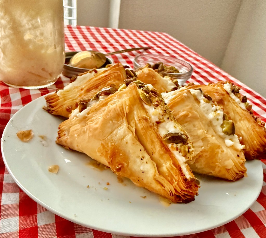 - Cut into 4.25″ squares (or adjust based on your filo size).