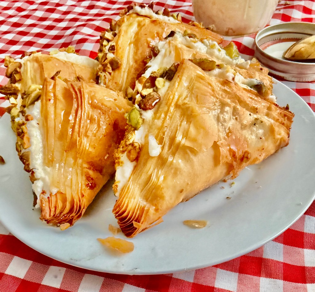 Warbat is a beloved Middle Eastern dessert made with layers of delicate filo dough, filled with rich ishta (clotted cream), and soaked in fragrant simple syrup. It’s crisp, creamy, sweet—but not overly so—and has that perfect bakery-style finish at home. This version uses a homemade ishta for full flavor, with the option to enhance it using a bit of ready-made ishta for added richness and smooth texture.