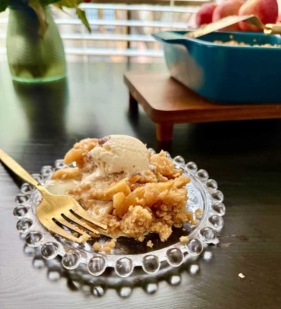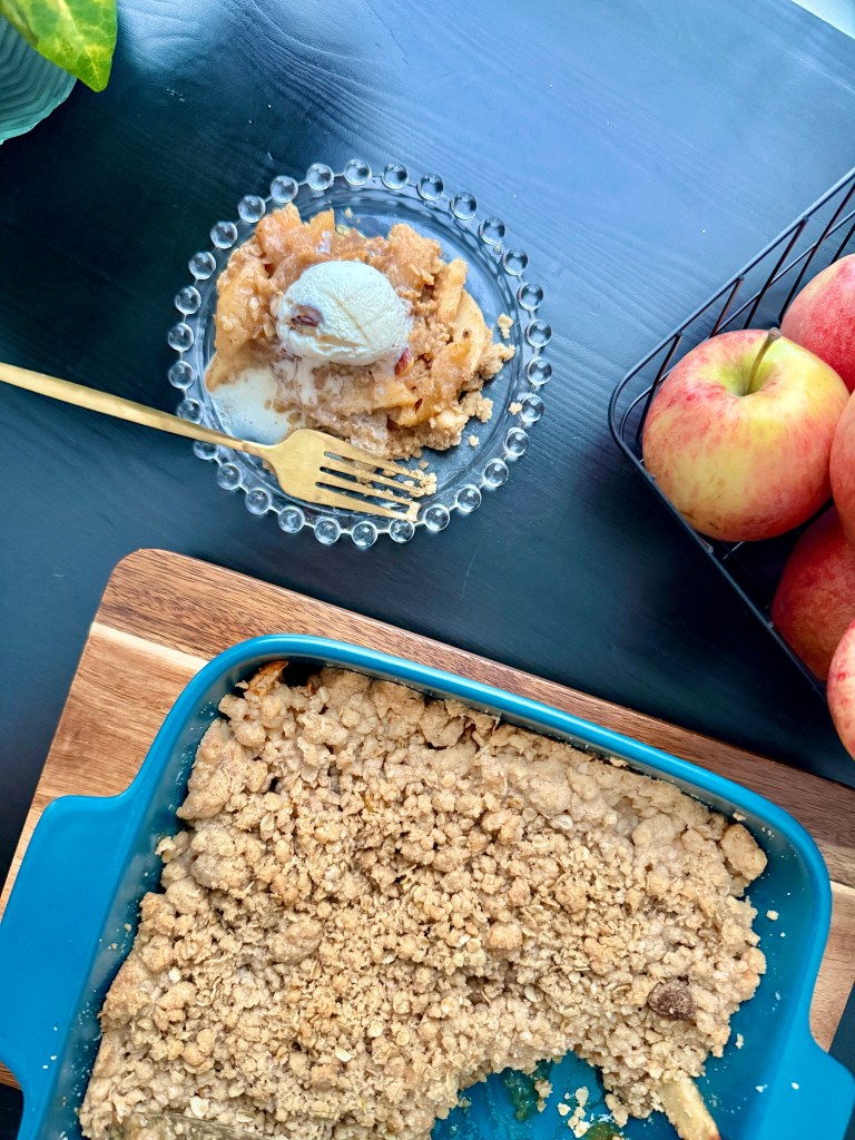- Bake for 40–45 minutes, until the top is golden and the apple filling is bubbling.