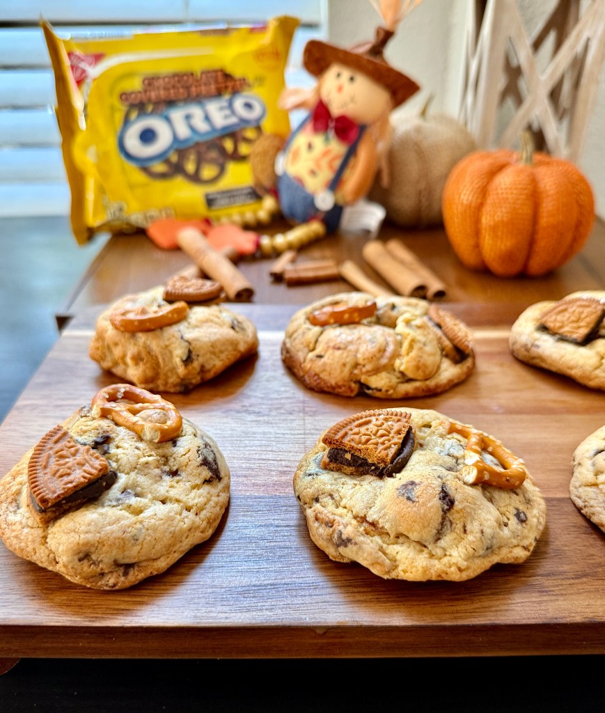 These Oreo Covered Chocolate Pretzel Cookies are the perfect sweet-and-salty treat. With gooey chocolate chips, crunchy pretzels, and the extra indulgence of Oreo-covered chocolate pretzels, every bite has the best mix of chewy, crunchy, and chocolaty goodness. Whether you’re baking for family, friends, or just yourself, these cookies are guaranteed to disappear fast!