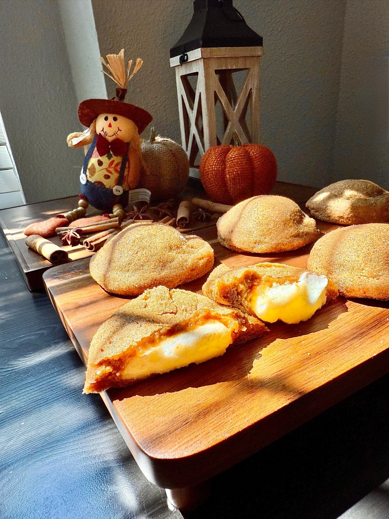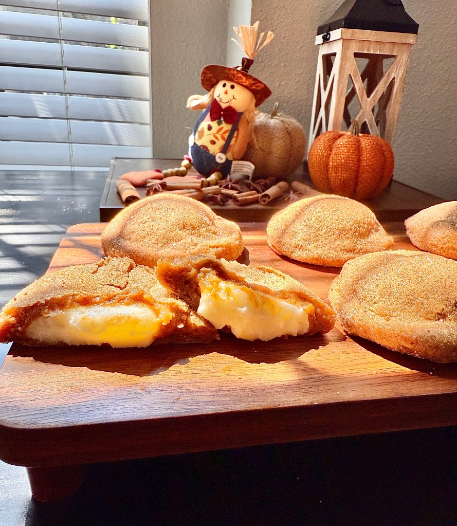 Soft, spiced pumpkin cookies with a creamy surprise inside!