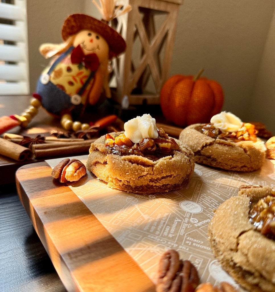 Soft, chewy, and filled with gooey pecan pie filling — these cookies bring all the cozy fall vibes in one bite! 🥧🍪