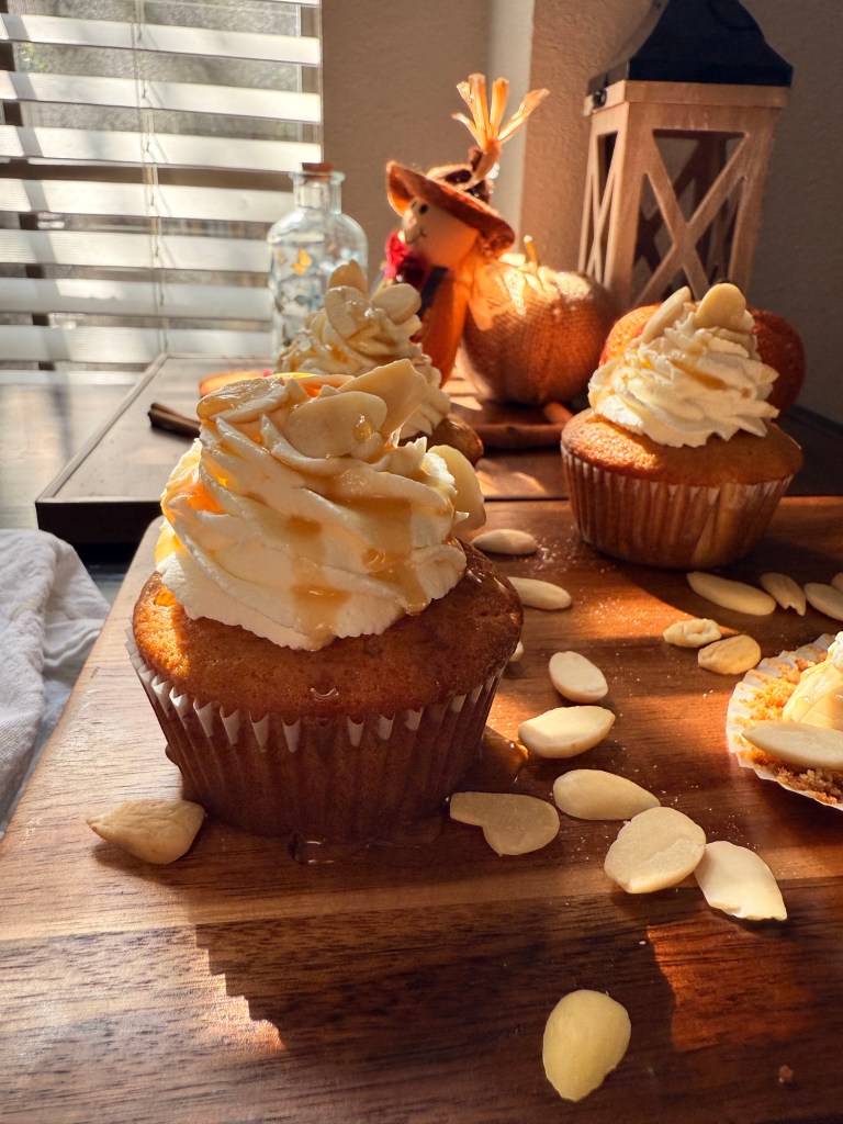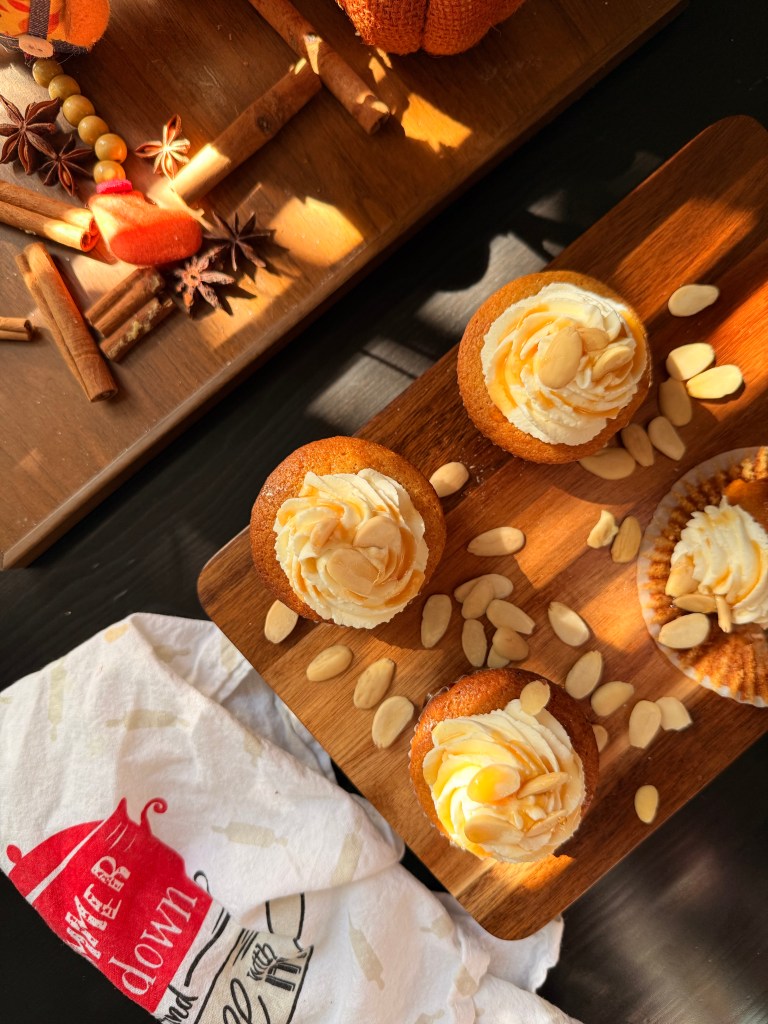- Frost & enjoy: Once cupcakes are completely cooled, top with almond cream.
